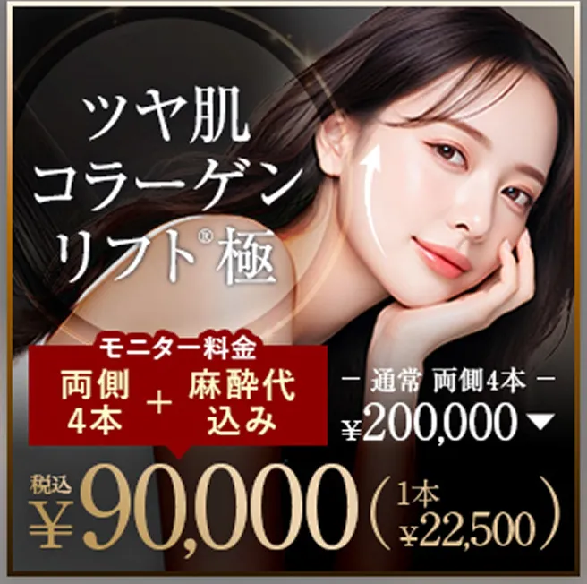 - 糸リフトモニターが感激のお得感!通常糸1本が44,000円のところ19,800円