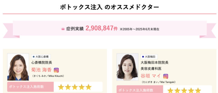 - ボトックス注入の上手い先生!症例実績約2,900,000件(2005年~2025年6月末現在)