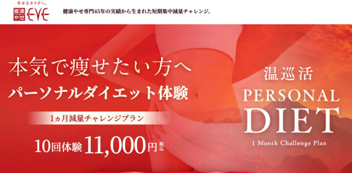 健康やせイヴの痩身エステでは、「1ヶ月減量チャレンジプラン」として、1ヶ月の間に10回通う短期集中型のプログラムを用意しています。料金は驚きの11,000円で、1回あたりわずか1,100円という手軽さです。