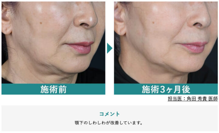 | 料金(税込) | 88,000円 (頬、顎下) (300ショット) 44,000円 (目元) (200ショット) |