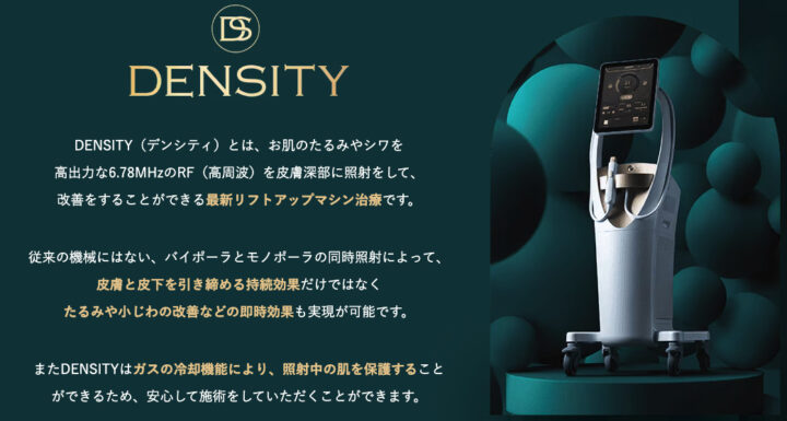 デンシティは「たるみ・シワの改善といった即時的な効果」と「肌のハリツヤ向上・毛穴の引き締めといった持続的な効果」が期待できる、高周波を使ったたるみ治療です。