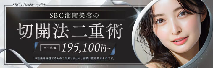 湘南美容クリニックは、全切開・部分(目頭/目尻)切開・垂れ目形成や眼瞼下垂術といった二重切開法のメニューが豊富です。料金は195,100円~で、平行型二重・末広型二重などあなたの理想を叶えます。