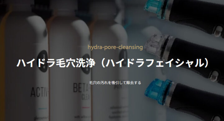 ハイドラフェイシャルは毛穴の黒ずみ汚れを掃除し、肌質改善を行う施術です。水流と吸引による洗浄で、日常の洗顔では落としきれない古い角質や毛穴の汚れを除去します。ダウンタイムはほぼなく、日常生活に支障がありません。