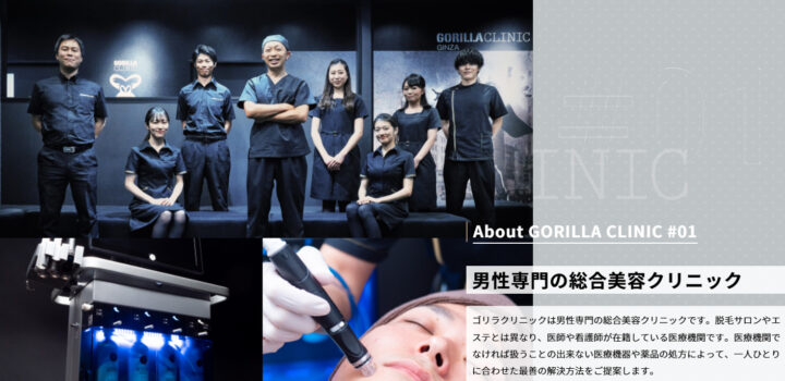 ゴリラクリニックはメンズ専門の総合美容クリニックです。ニキビ、わきが、AGA治療など男性の悩みにフォーカスした治療を行っています。