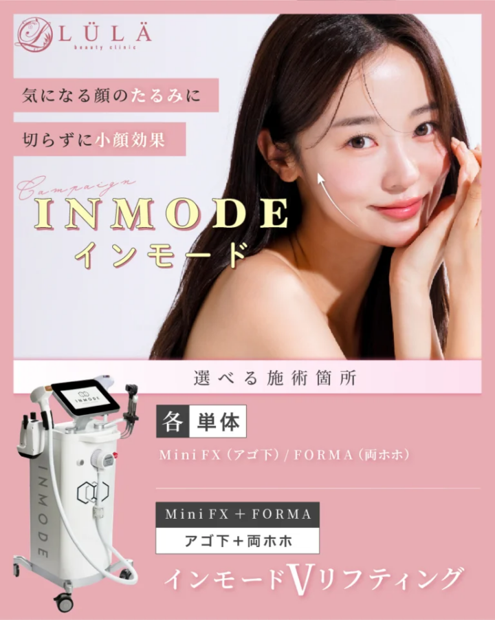 インモードは、肌質の改善やフェイスラインの引き締めに有効な施術です。そんな嬉しいインモードを、ルラ美容クリニック町田院フォーマ・ミニFx各1回13,200円インモードリフトを1回21,780円の安さで提供しています。