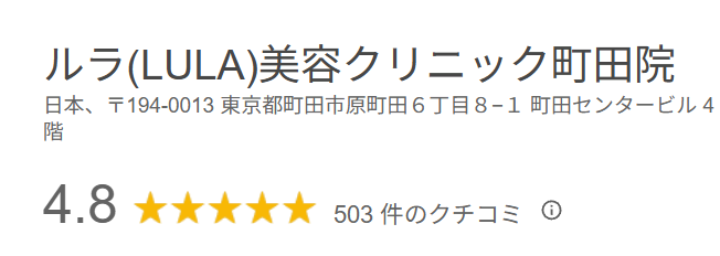 【Google口コミ★4.8】ルラ美容クリニック町田院は口コミ高評価