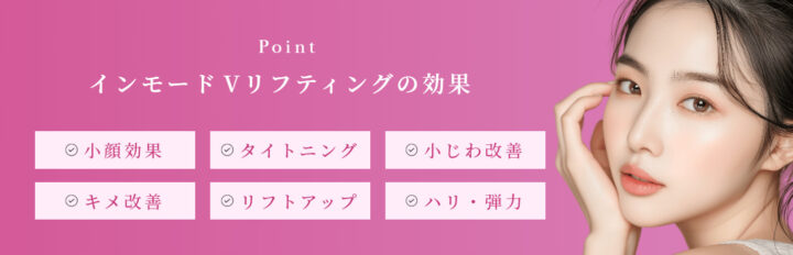 【症例】インモードVリフティング【施術内容】手術なしの高周波処置で、タイトニング・肌質改善・脂肪破壊ができる!【副作用・リスク】吸引性皮下出血:3〜7日、痛み・灼熱感:術中少しあり、メイク・洗顔・シャワー:当日、レチノール類(皮むけ、赤み出る)美容液、外服薬は前後2週間NG【料金】インモードVリフティング 〜¥33,000*自費診療です。引用:ルラ美容クリニック