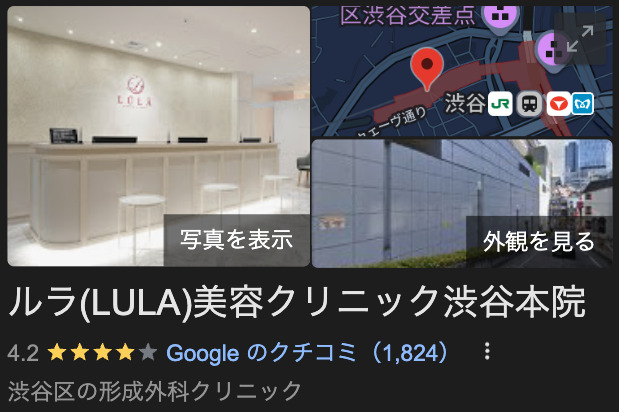 ルラ美容クリニックの強みは驚きの低価格だけでなく、利用者の口コミ・評判にも優れています。全国30院以上を展開しており、どこもGoogleマップで★4.3以上の高評価を獲得しています。