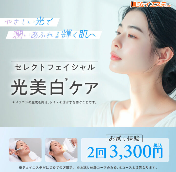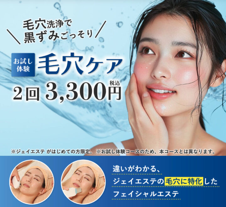 140万人に美を提供し、効果を実感できるエステサロンとして高く評価されているジェイエステでは、ワキ脱毛330円・フェイシャルエステ体験を3,300円の安さで受けられます。