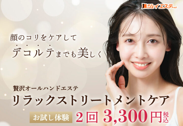 ジェイエステはフェイシャルエステに定評があります。効果を実感できると評判高いサロンのフェイシャルエステを、初回は3,300円の安さで2回も体験でき高コスパでおすすめです。