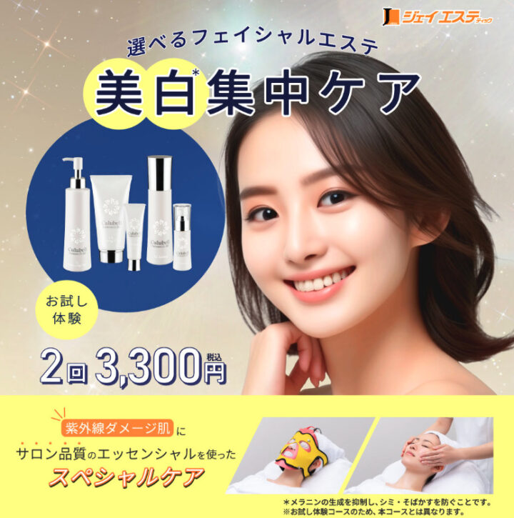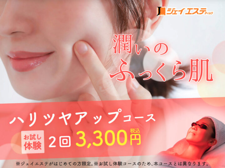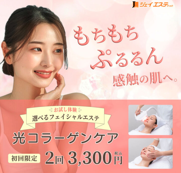 ジェイエステティックのフェイシャルエステ体験は他社と比較しても圧倒的な安さ、たった3,300円で2回も堪能できます。ジェイエステのエステ体験に行かない選択肢はありません。