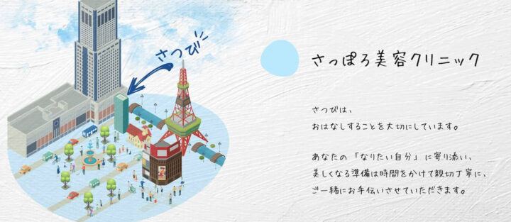さっぽろ美容クリニックは札幌駅から徒歩1分の本院と、通いやすい円山院の2院を展開しており、お客様とのコミュニケーションを大切にしながら、親切丁寧に悩みに寄り添う診療を提供しています。