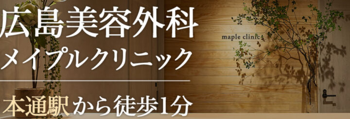 広島美容外科メイプルクリニックはエイジングケア治療に力を入れている口コミ評価の高いクリニックです。本通駅から徒歩1分とアクセスも良好で、丁寧なカウンセリングを重視しています。