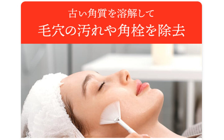 マッサージピール真皮層のコラーゲン生成を促進するピーリングです。即効性を実感でき、肌のハリや弾力、小ジワの解消に効果を発揮するとされています。