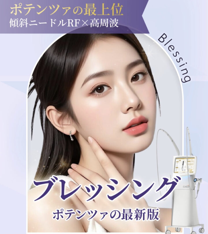 新宿TAクリニックは、ポテンツァの進化版ともいわれる「ブレッシング」を導入しています。毛穴開きやニキビ跡、小じわや肌質改善まで、幅広い美肌効果が期待できるマイクロニードルRF治療です。