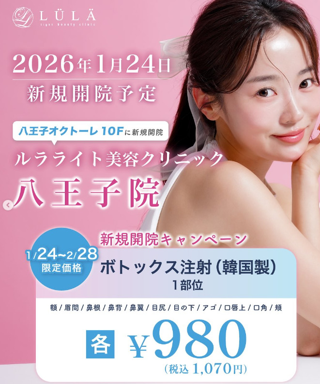 ルラ美容クリニックが、新ブランド「ルラライト美容クリニック八王子院」を展開しました。トレンドの肌管理施術が想像を超える安さで提供されているので、ルラライト八王子院の情報から目が離せません。