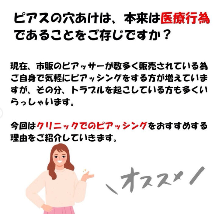 - やっぱり病院がいい!アレルギー対応のファーストピアスを用意