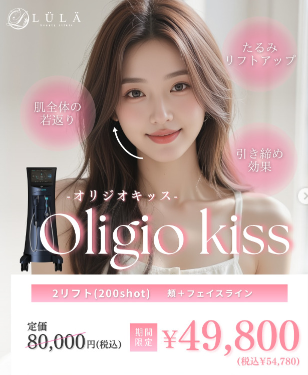 ルラ美容クリニック 福岡院は、オリジオKissをホホ+フェイスライン200ショットが54,780円と驚きの高コスパで提供しています。初めての方が試しやすい安心価格が魅力です。