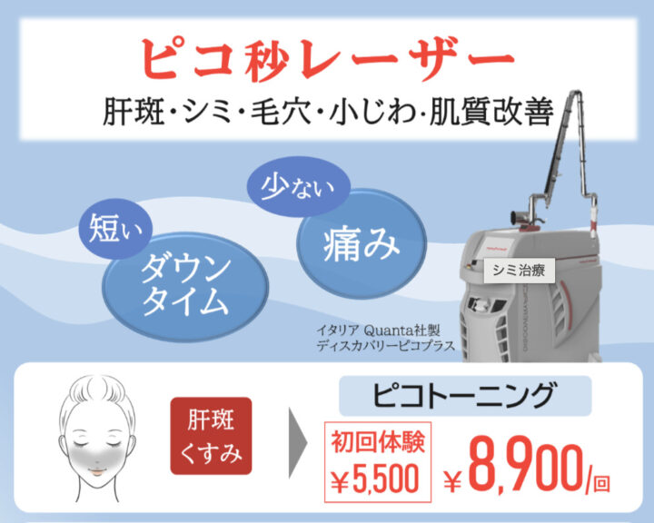 - 厚生労働省認可のピコレーザー機器を使用
