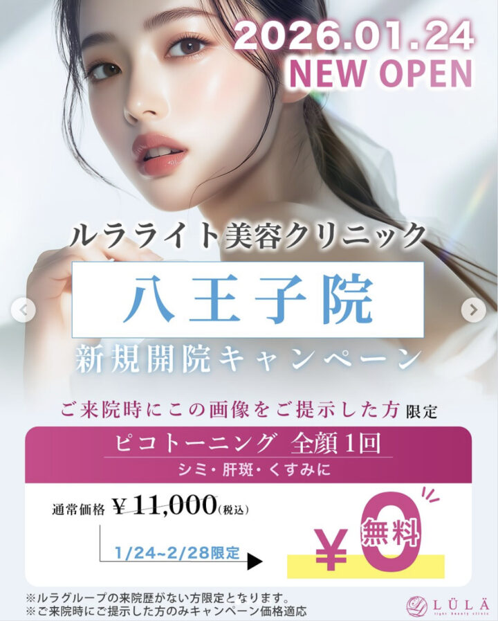 ルラライト美容クリニック 八王子院は、インスタグラムの提示でピコトーニングを全顔1回無料で提供することにしました。美肌治療のコストを抑えたい方にもってこいの選択肢です。