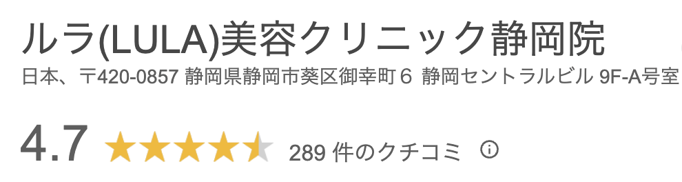 (静岡の平均相場:45,000円) - Googleの口コミ★4.7の高評価クリニック