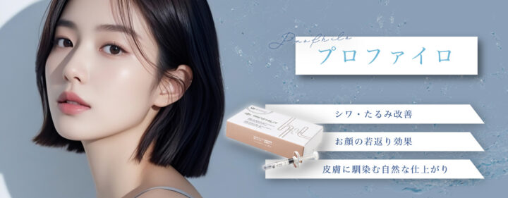 プロファイロとは、高分子ヒアルロン酸と低分子ヒアルロン酸の2種を配合した製剤を肌に注入し、肌のハリや弾力性を皮膚構造を再構築し修復する目的の注射治療です。