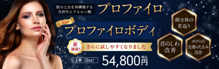 プロファイロは皮膚の再生能力を高めることで、シワ・たるみ・ボリューム不足など年齢による肌悩みの改善効果が見込めるヒアルロン酸注入治療です。
