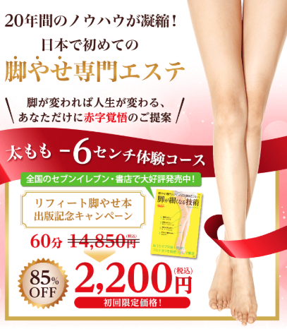 脚痩せ専門店のリフィートでは、通常14,850円の脚痩せ体験コースが初回は2,200円で受けられます。