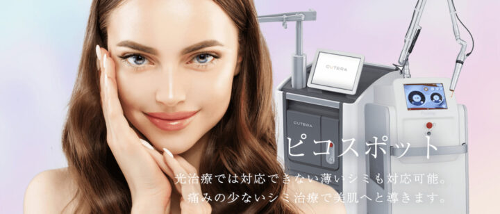 ピコスポットはピコレーザーの一種で、狭い範囲に高い出力で照射できます。ダウンタイムが少なく施術後のテープも必要ないため、シミ取り放題に利用するクリニックが多いです。