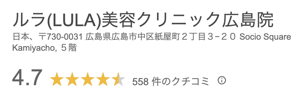 ルラ美容クリニック広島院は口コミ評価★4.7の安心のクリニック