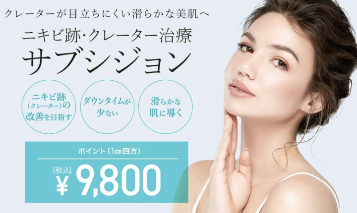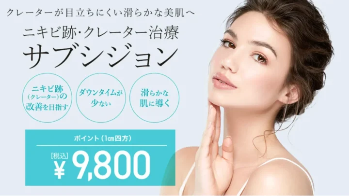 | 施術概要 | ニキビ跡の「クレーター(凹み)」の改善を目的とした医療施術 医療用の細い針を皮膚の下に挿入し、クレーターの原因となっている線維化組織(瘢痕組織)を物理的に切断・剥離する |