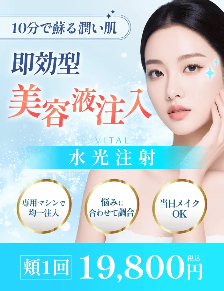 • 水光注射1回19,800円!お得な初回価格を提供中