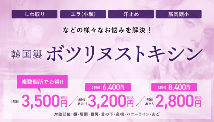![]() エラボトックス | 両側 5,880円 | 10,000円 ~50,000円 |