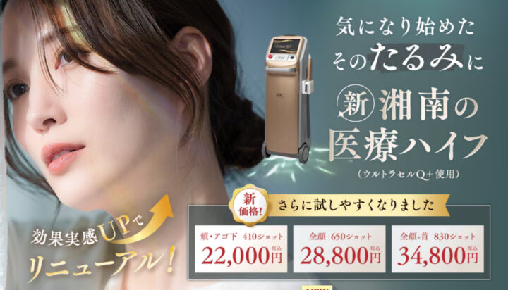 湘南美容クリニックでは、痛みが少なく、肌の引き上げ・引き締め効果が期待できるウルトラセルQ+を導入しています。410ショットは22,000円・650ショット28,8000円は1ショットあたり45円!コスパ派におすすめです。