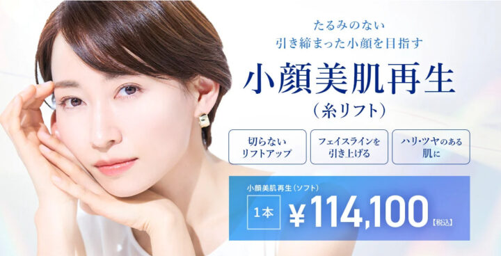 | 糸リフト | ・TCB式小顔美肌再生 ・TCB小顔リフト ・クリアファインリフト | ・SBCプリマリフト ・Vラインシェイプ-SBCプリマリフト- ・シークレットリフト ・テスリフト ・VOVリフト | ・美肌糸リフト |