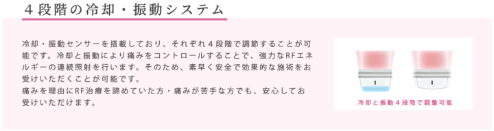ボルニューマはリフトアップやたるみ・シワ改善・引き締め効果が期待できる高周波治療です。独自の周波数で強力なタイトニングが期待できるだけでなく、冷却・振動システムにより痛みも軽微とされています。