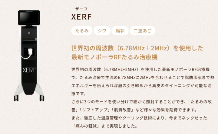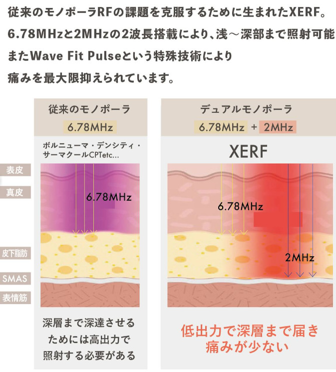 痛みが強いから効果が大きい!?そんな考えを覆し、痛みを抑え、たるみに対して手ごたえのある効果が期待できるのがXERF(ザーフ)です。
