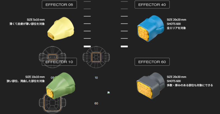 | 効果 | たるみの改善 リフトアップ 肌質改善 | リフトアップ タイトニング 肌のハリ改善 | たるみの改善 リフトアップ 肌のハリ改善 | 肌の引き締め リフトアップ 小じわの改善 |