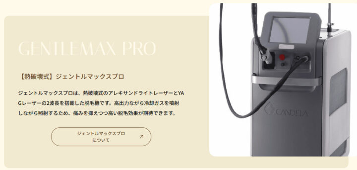 ゴリラクリニックでは「ジェントルマックスプロ」や「ジェントルヤグプロ」を使った医療脱毛を提供しています。