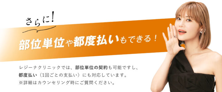 レジーナクリニックでは、全身や顔のセットプランだけでなく細かい部位ごとでも都度払いが可能です。